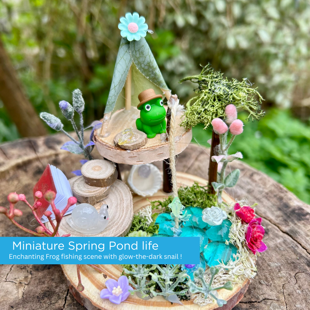 Children aged 5+ will create their own enchanting mini pond scene, complete with a playful frog fishing setup. Each tiny world includes a glow-in-the-dark snail, fishing frog, and miniature fish, plus a mini sketchbook for pond-life drawings.