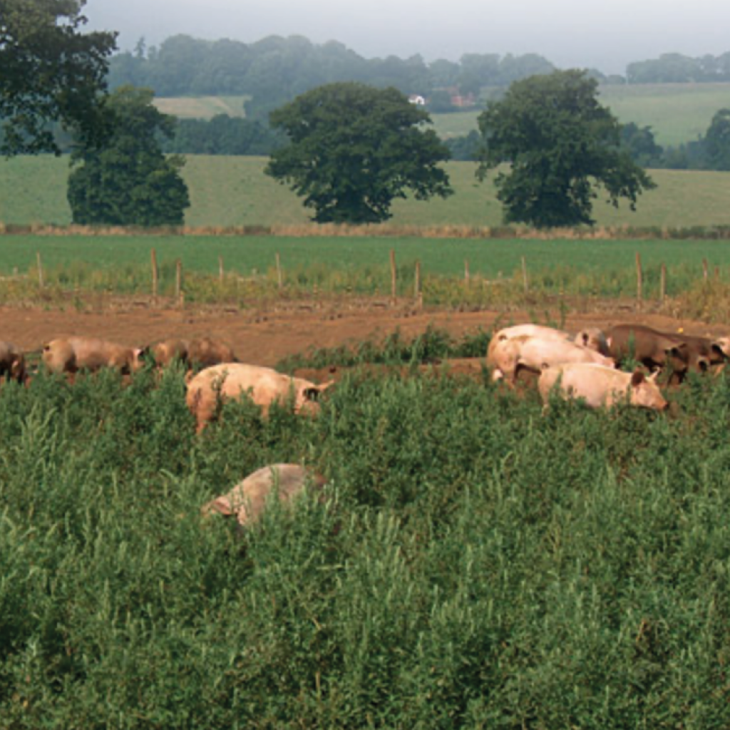 Plantation Pigs breed Duroc/Hampshire crosses producing high-quality, succulent and tender free-range pork. The pigs live out their lives roaming freely in open fields on top of the South Downs, bathing in mud wallows during summer months to protect themselves from the sun and sleeping in deep straw beds in the winter to stay warm.